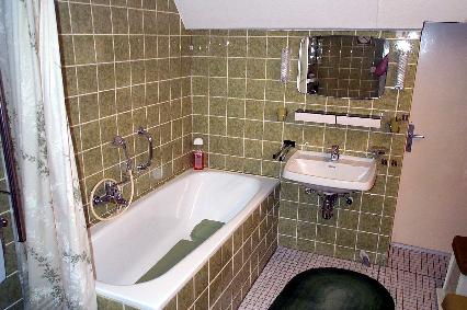 Im Souterrain befindet sich das Bad mit Badewanne,
