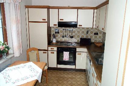 Die Küche mit Kühlschrank (mit Gefrierfach), Geschirrspüler, 4 Platten-Cerankochfeld, Backofen und Sitzmöglichkeit für 2-4 Personen